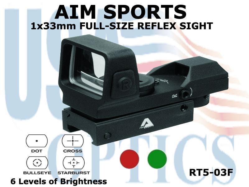 AIM SPORTS, RT5-03F, FULL SIZE RED DOT 4 RETICLE RED AND GREEN ILLUM/WIDE VIEW/BUTTONS