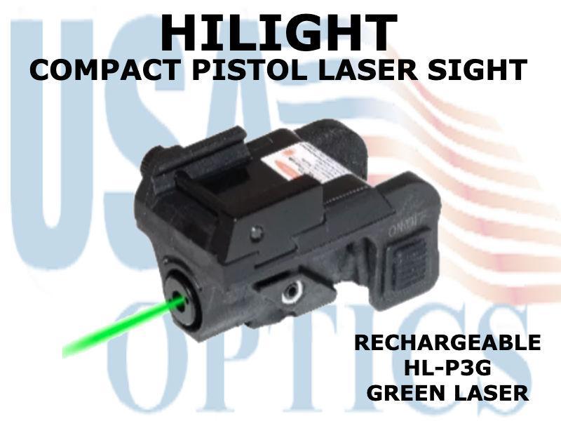 HILIGHT, HL-P3G, LOW PROFILE RECHARGEABLE GREEN LASER SIGHT