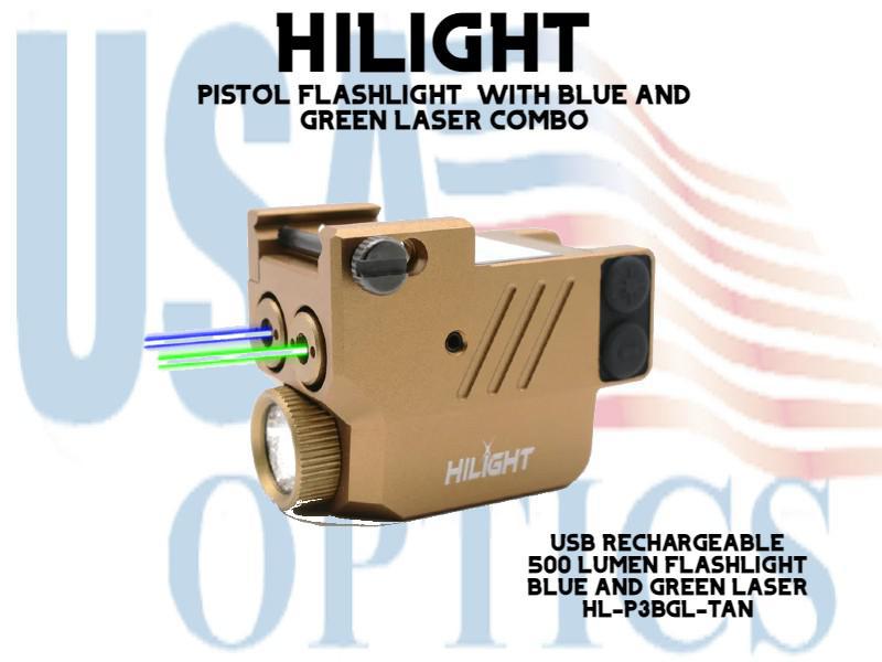 HILIGHT, HL-P3BGL-TAN, PISTOL FLASHLIGHT WITH BLUE AND GREEN LASER COMBO - TAN